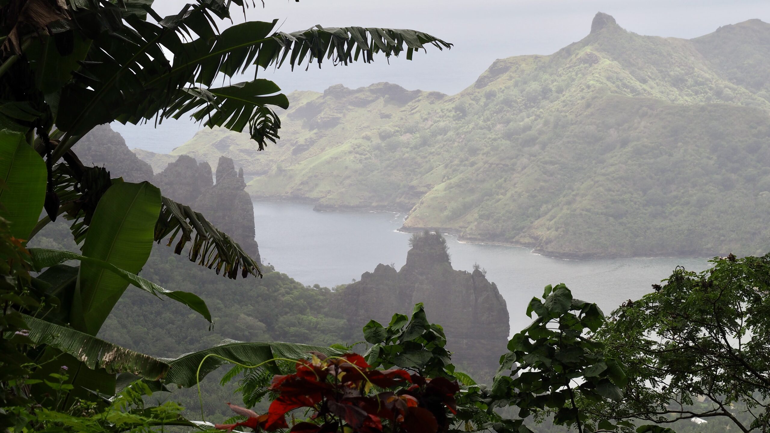 Les îles Marquises, c’est la Terre des Hommes, le Fenua Enata. Vous y arrivez après une peu plus de 3 heures de vol en partant de Tahiti. L’aéroport se trouve à 2 heures de route du principal village : Taiohae. C’est Regina de la pension Mave Mai qui vient me chercher. Le temps du trajet, Regina me raconte les légendes de l’île, l’histoire de ses forêts anciennement domaniales, mais aussi les futurs projets comme celui de l’aéroport international. Dans le creux d’un tournant, elle s’arrête pour me montrer le Grand Cayon des Marquises, un endroit étonnamment sec, semblable au Colorado.