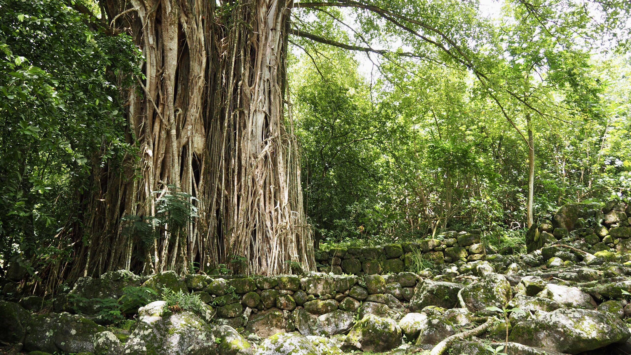Pour trouver les pétroglyphes, il faut monter derrière le grand banian